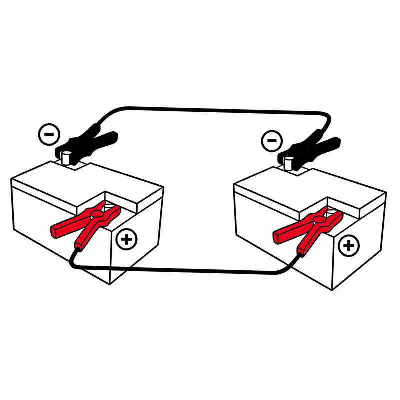• Klämmor av professionell kvalitet: Utrustad medkraftiga helt isolerade klämmormed starka interna fjädrar för ett säkert, halkfritt grepp på topp- och sidostolpsbatterier.