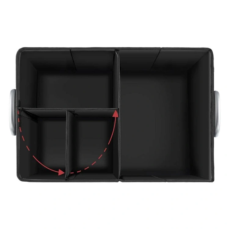 **Stadiga träavdelare** Den hopfällbara bilarrangören har fasta träavdelare inslagna i Oxford 600D-tyg som är tufft mot slitage, vattentät och lätt att torka av. Locket, ytterväggarna och basen är byggda med 2,5 mm träfiberskivor med medeldensitet och pärlbomull, vilket ger allvarlig stabilitet och bärighet.