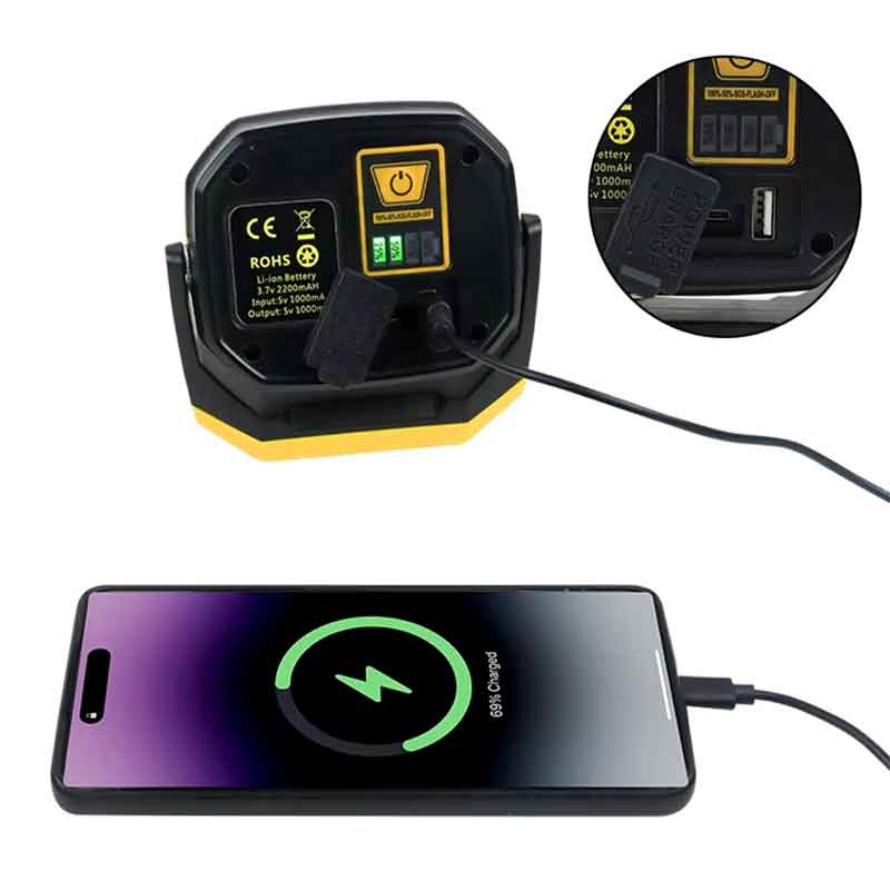 A: Ja. USB-C-porten stöder både ingång (laddning av arbetslampan) och utgång (fungerar som en powerbank för att ladda mobila enheter).