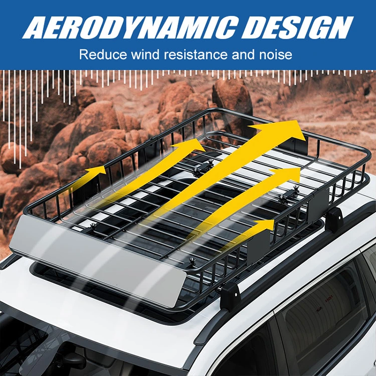 Fancy Roof Rack Carrier Baskets aerodynamiska design minskar vindmotstånd och buller under körning. Designen tillåter luft att strömma fritt över ställningen, vilket minskar motståndet och bränsleförbrukningen. Det är motorvägsvänligt; den ger en tystare, mjukare körning, även i höga hastigheter.