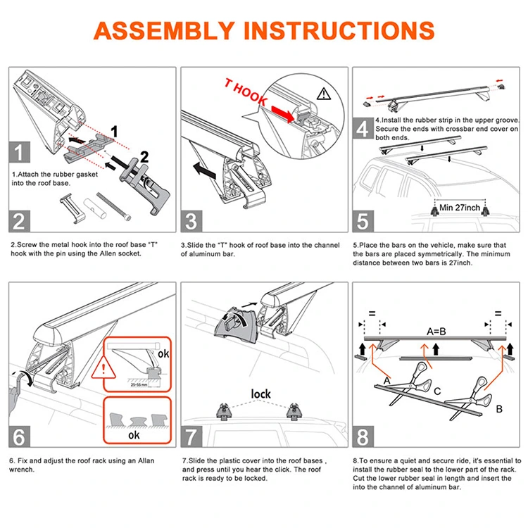 Dessa takräcken är enkla att installera: Insexnyckel ingår för 10-minuters installation; manual med steg-för-steg-illustrationer.
