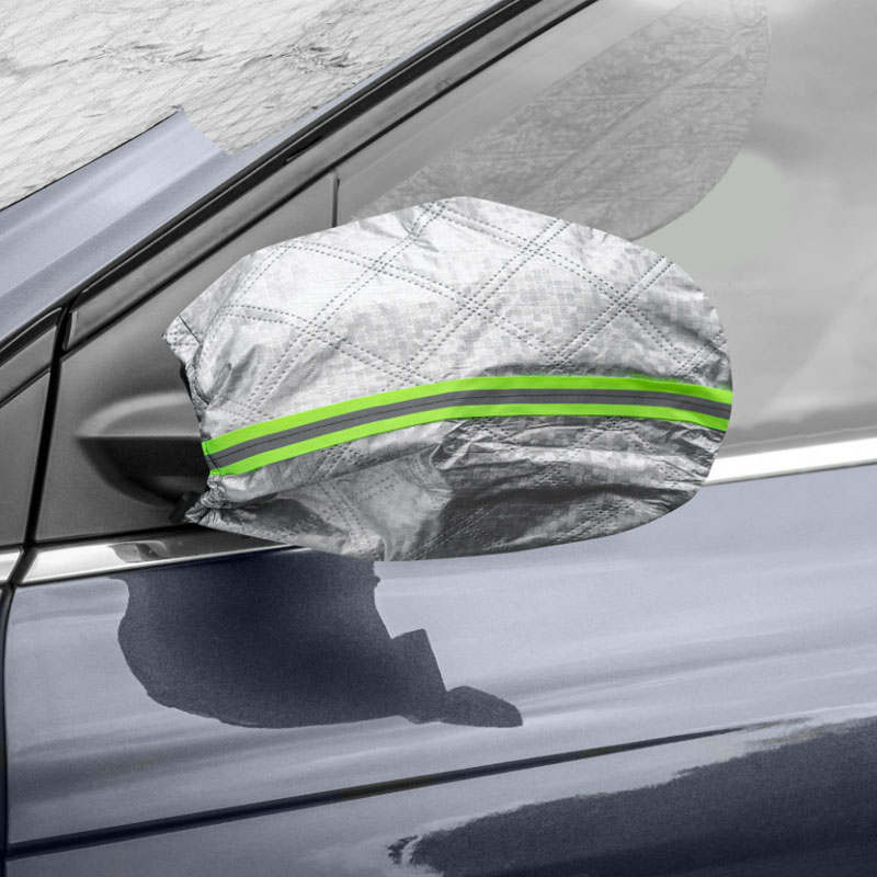 Säkerhetsfunktioner för snösäkert bilskydd: Spegelfickorna har reflekterande remsor som gör din bil lättare att se i mörkt eller snöigt väder, vilket minskar riskerna på parkeringsplatser.