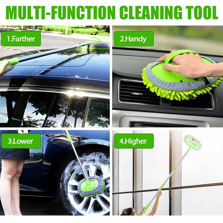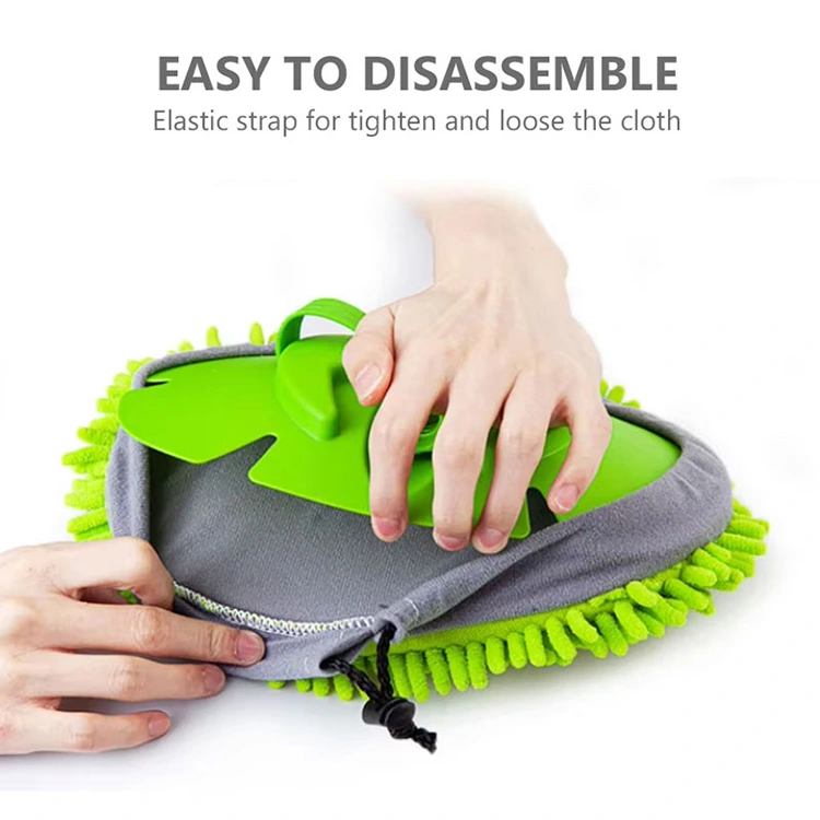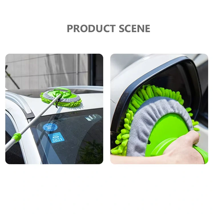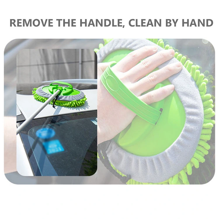 Lätt att demontera och byta ut: Det billiga priset Teleskopisk biltvättmopp är enkel och långvarig. Den har ett avtagbart grönt rengöringsöverdrag med grå chenillekant och inbyggt dragsko. Den elastiska remmen gör att den enkelt kan dras åt eller lossas, vilket gör den lätt att justera och byta ut.