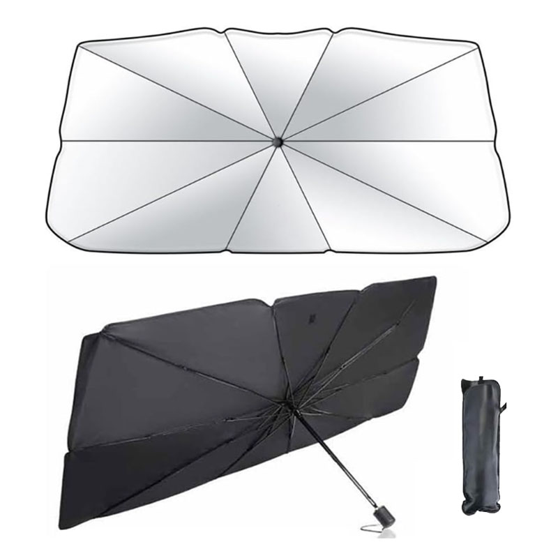 Detta billiga vindskydd parasoll erbjuder en modern uppgradering från traditionella solskydd. Designad som ett paraply, öppnas den och installeras på några sekunder, vilket ger kraftfullt UV-skydd och kylning för ditt fordon.